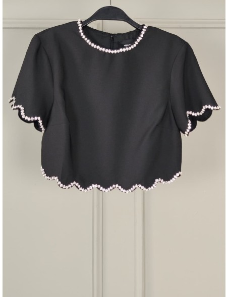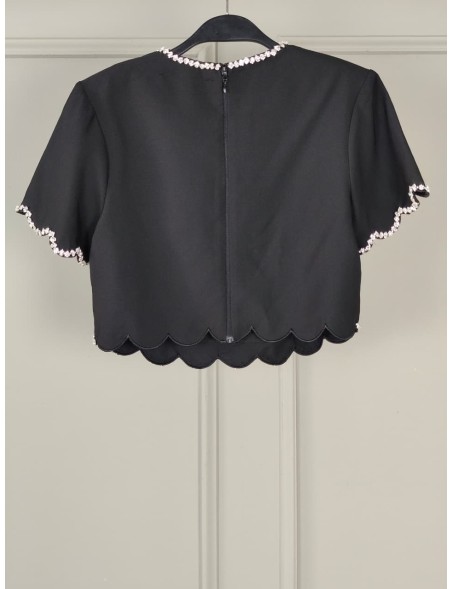 SCALLOPED TOP WITH RHINESTONE TRIM