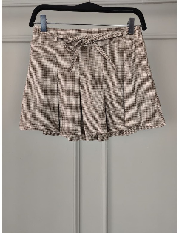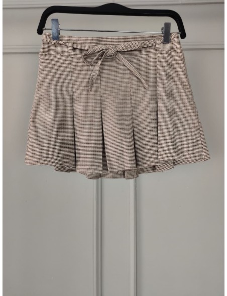 PLAID WAIST TIE DETAIL PLEATED MINI SKIRT