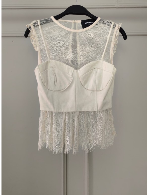 LACE WITH CORSET SLEEVELESS TOP