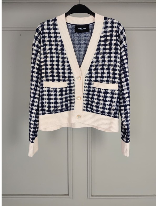 CHECKERED PATTERN KNIT CÁRDIGAN