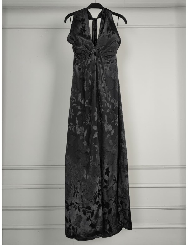 CROSS FRONT NECK HALTER MAXI DRESS