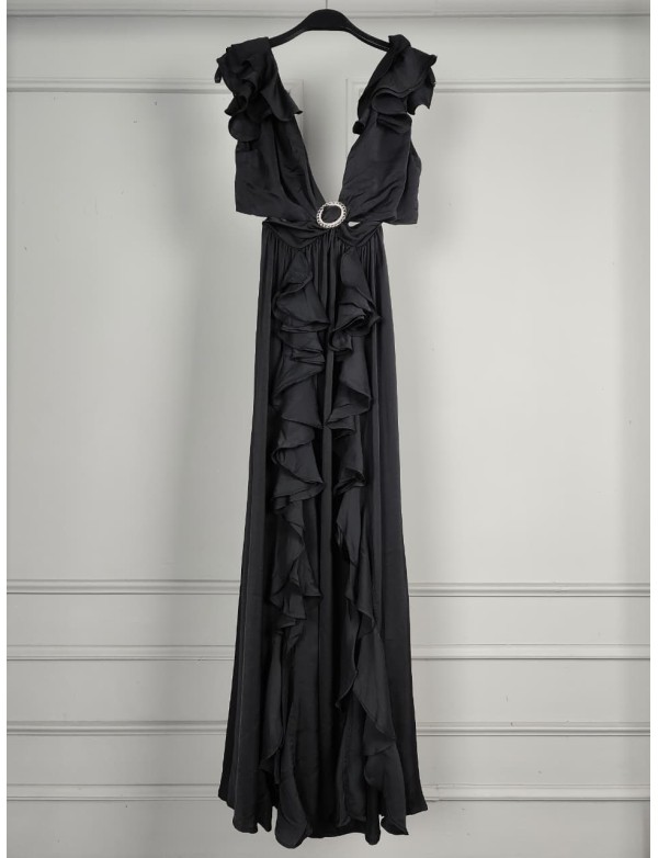 SLEEVELESS RUFFLE DETAIL CUT-OUT WAISTED MAXI DRESS