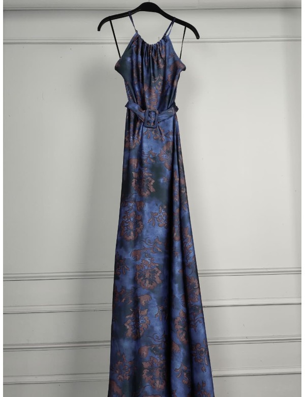 THIN ADJUSTABLE STRAP TIE BACK WAISTED MAXI DRESS