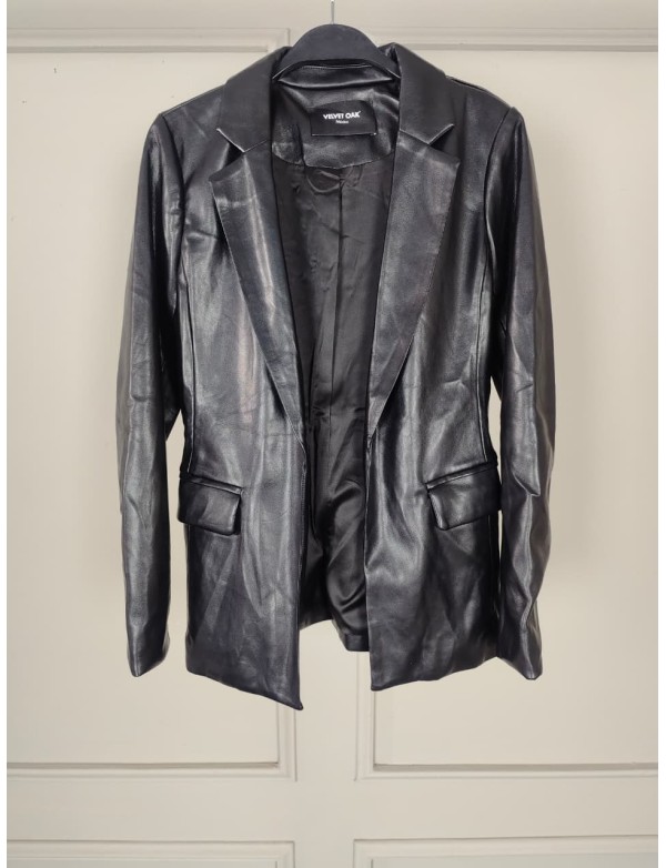 FAUX LEATHER OPEN BLAZER