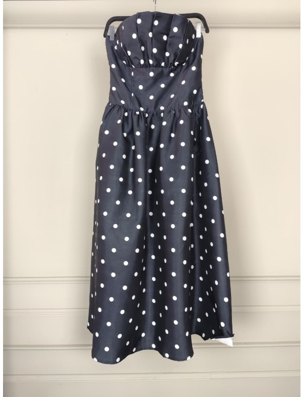 POLKA DOT DROP WAIST CORSET MIDI DRESS