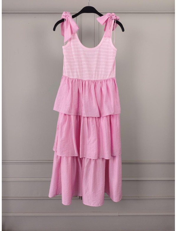 SHOULDER BOW DETAIL 3 TIRED 2FER DRESS