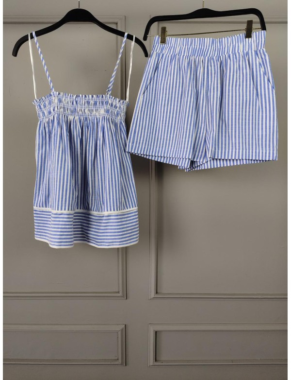 THIN ADJUSTABLE STRAP STRIPE TOP AND STRIPE SHORTS SET