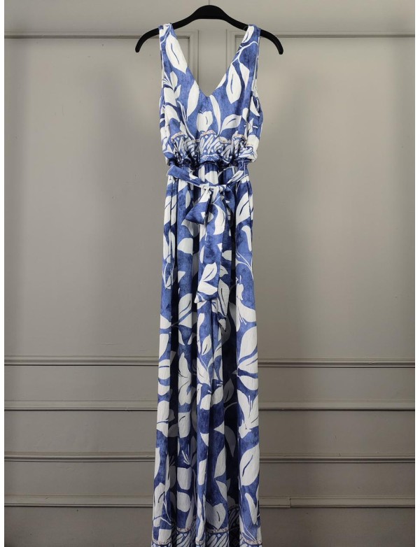 SLEEVELESS ELASTIC WAISTED BELTED JUMPSUIT